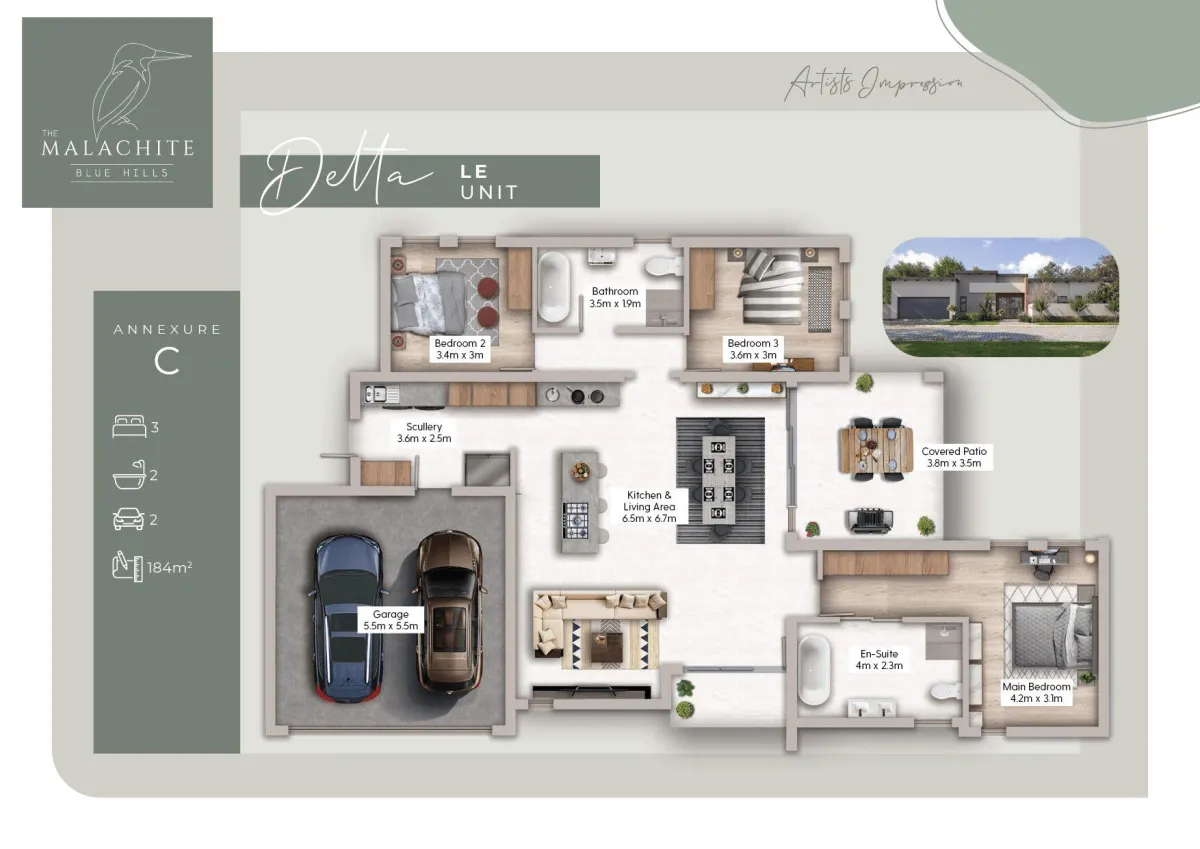 The Delta LE at The Malachite offers an expansive 184 m² of luxurious living space, perfect for growing families.